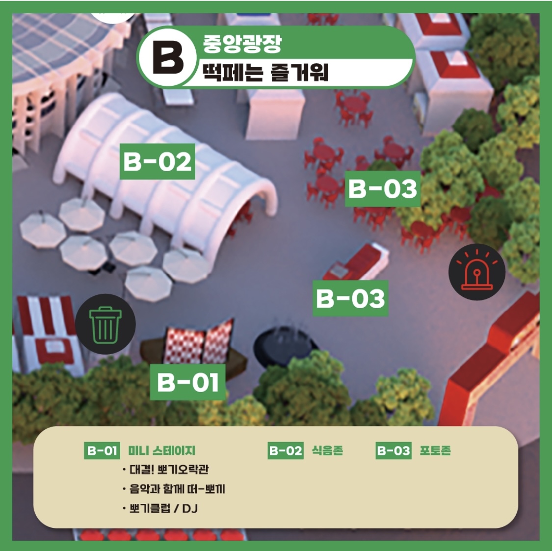 체험존에는 뽀기오락관, DJ 페스티벌, 굿즈샵, 시대별 전시 및 체험존 등 다양한 체험 프로그램이 진행됩니다.