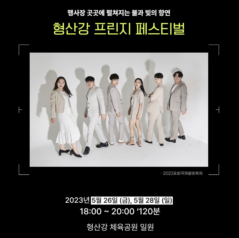 - 2023. 5. 26.(금), 2023. 5. 28.(일) 18:00 ~ 20:00[120분], 형산강 체육공원 일원